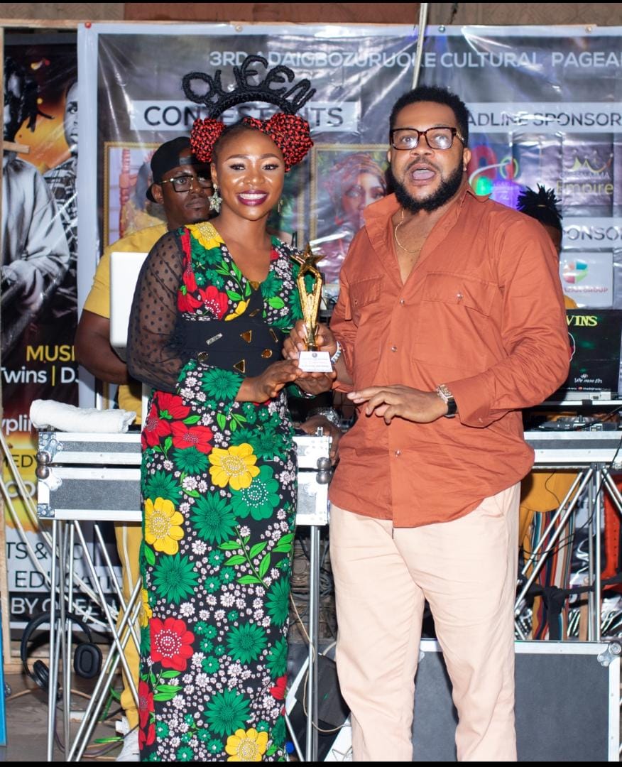 As a courageous and enterprising Igbo maiden, Queen Mma never stopped. She rather went forward to participate in a National pageant, where she emerged the MOST BEAUTIFUL DIVA IN NIGERIA 2018, and bagged an award for HUMANITARIAN AMBASSADOR of the year too. In the year 2022, she won an AFRICAN HUMANITY AWARD, as THE MOST INDUSTRIOUS ICON OF THE YEAR, and recently, she bagged yet another award as THE MOST SUPPORTIVE FEMALE PAGEANT CONSULTANT OF THE YEAR, 2023, under DYNAMIC AFRICAN AWARDS.