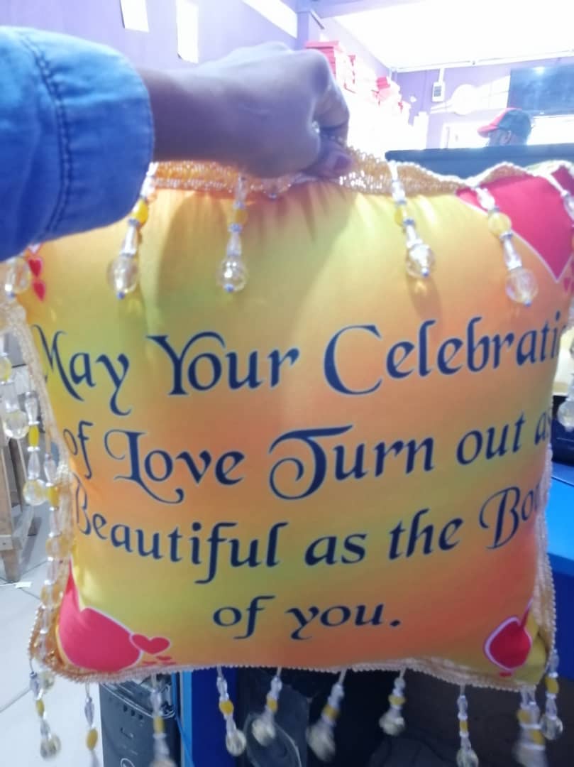To place order for throw pillow in Excellence Awards International is simple. Chat up our whats-app number 08033820855. Then send your clear Picture and text through the same medium. And you will get your order in 24 hours. If you are in Lagos, you will receive your order with ease. Also if you are outside Lagos, you will also receive your order but through our waybill medium to any part of Nigeria. So for all your throw pillow branding in Lagos and Abuja feel free to call on us.